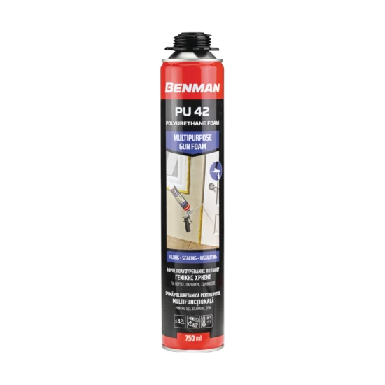 Αφρός πολυουρεθάνης πιστολιού γενικής χρήσης, από την εταιρεία Benman. Είναι ιδανικός για γέμισμα, στεγανοποίηση και μόνωση σε καθημερινές οικοδομικές και τεχνικές εφαρμογές.