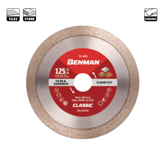 Διαμαντόδισκος πλακιδίων, από την εταιρεία Benman, κατάλληλος για καθαρές κοπές σε πλακάκια, κεραμικά υλικά, και πέτρα.