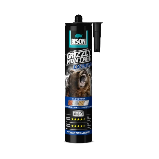 Κατασκευαστική κόλλα με ισχυρό αρχικό άρπαγμα και πολύ δυνατή τελική ωρίμανση, από την εταιρεία Bison, ιδανική για χρήση σε εσωτερικούς και εξωτερικούς χώρους.