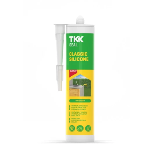 Σιλικόνη σφραγιστική, οξικής βάσης, μόνιμα ελαστική, αντιμουχλική, από την εταιρεία TKK, για ελαστική στεγανοποίηση λείων, μη απορροφητικών δομικών επιφανειών (γυαλί, κεραμικά, αλουμίνιο κ.λπ.).