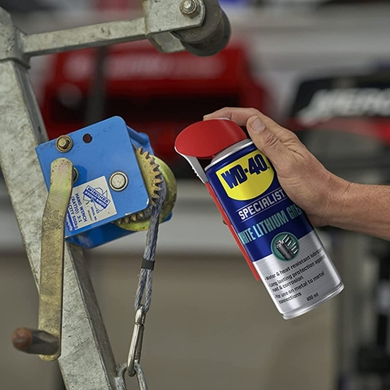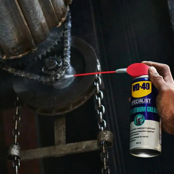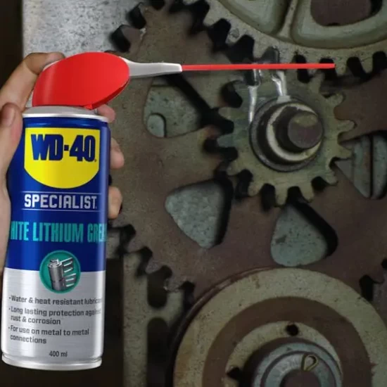 Σπρέι γράσου λευκού λιθίου, με τεχνολογία διπλού ψεκασμού, από την εταιρεία WD-40. Πρόκειται για ένα λιπαντικό σπρέι υψηλής απόδοσης με λευκό λίθιο, σχεδιασμένο να παρέχει εξαιρετική προστασία και μακροχρόνια λίπανση σε βαρέα φορτία και κινούμενα μεταλλικά μέρη.