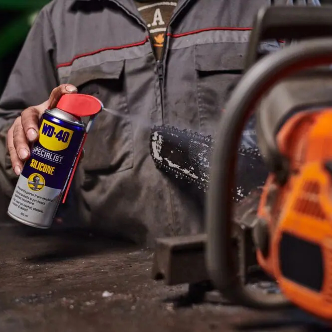 Σπρέι σιλικόνης, με τεχνολογία διπλού ψεκασμού, από την εταιρεία WD-40. Πρόκειται για ένα λιπαντικό σπρέι σιλικόνης, υψηλής απόδοσης, σχεδιασμένο να παρέχει εξαιρετική προστασία και λίπανση σε μέταλλα, πλαστικά και λάστιχα, αλλά και σε μηχανήματα υψηλής πίεσης.