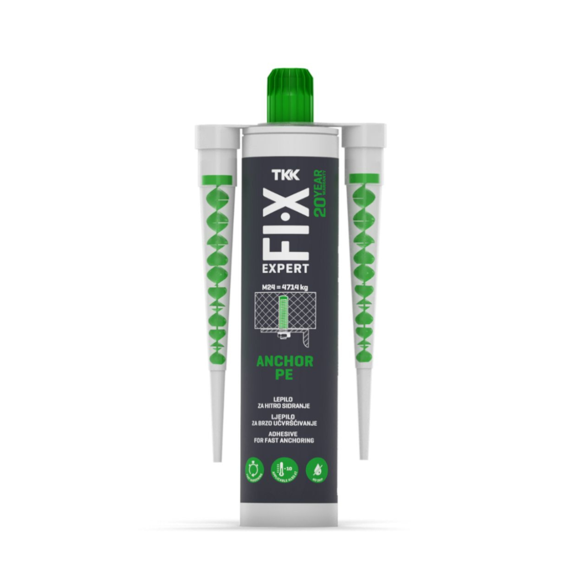 Κόλλα δύο συστατικών, ταχείας πήξης, για χημική αγκύρωση (χημικό βύσμα), από την εταιρεία TKK, ιδανική για γρήγορη αγκύρωση σε πέτρα, σκυρόδεμα ή τούβλο.